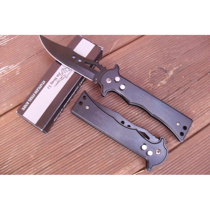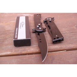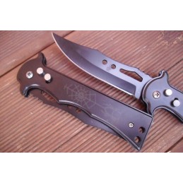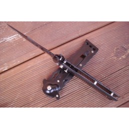 Couteau automatique à pression, design agressif Pliant de Poche avec Sa lame en acier inoxydable tant aux lignes tendues est à ouverture facile mesure 9 cm elle est en acier inoxydable et possède une sécurité, manche de 12 cm en résine gravé, et poids 105 g.