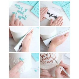 Vous pouvez utiliser le "Tacky Pad" (ou support autocollant) pour aligner parfaitement votre sélection et pressez votre message directement sur votre gâteau !