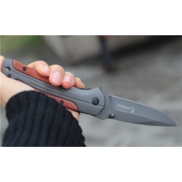tendues est à ouverture facile mesure 9 cm et possède une sécurité, manche en acier/bois de 12 cm, et poids 180 g.