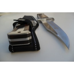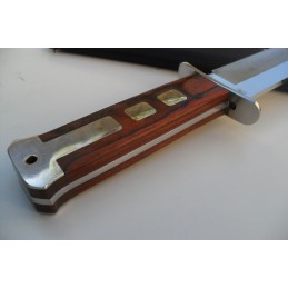Modèle à lame fixe. Manche en bois bicolore en chrome. Manche anti dérapant de 11 cm de longueur. Une soie traversante (lame et manche en une seule pièce). Excellente prise en main.